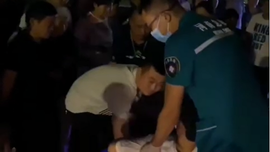 當日22時許,張旭下班返家途中,在人民路市市場監督管理局附近遇到一起車禍。張旭上前查看情況,只見一男孩躺倒在地、痛苦呻吟,地上有少量血跡,電動車歪倒在路中央。