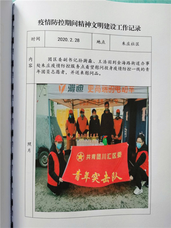 規(guī)范統(tǒng)一。朱莊社區(qū)創(chuàng)文檔案資料主要包括疫情防控、綜合文化服務、志愿者服務、黨員教育、普法教育等內(nèi)容,共12本。在格式方面,對字體、字號、圖片排版、數(shù)字和標點符號使用等進行規(guī)范,做到風格統(tǒng)一。在活動記錄方面,分為活動方案制定、活動圖片、活動小結(jié)等內(nèi)容,按照統(tǒng)一格式匯總整理,手寫記錄與彩色照片搭配,使活動記錄清楚、生動、明了。在資料裝訂方面,采用統(tǒng)一封面活頁裝訂。