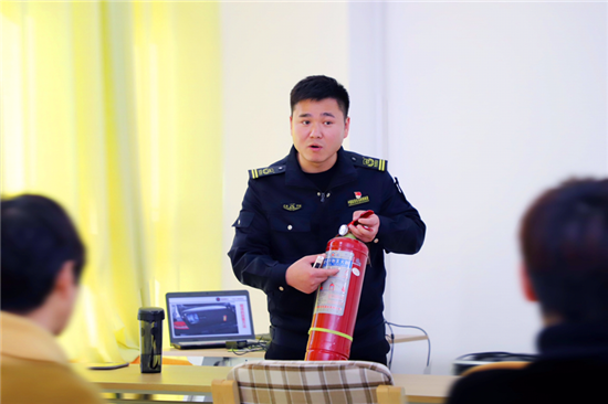 廉文戰運用文字、圖像、視頻,結合近年來在國內公共場所、家庭典型火災事例,從火災起因、火災種類、火災預防、滅火基本方法、消防器材種類和使用方法、火災疏散逃生方法和注意事項等進行了深入淺出的講解,并就如何正確使用身邊的手持式干粉滅火器和車載便攜式氣溶膠滅火器進行了示范。