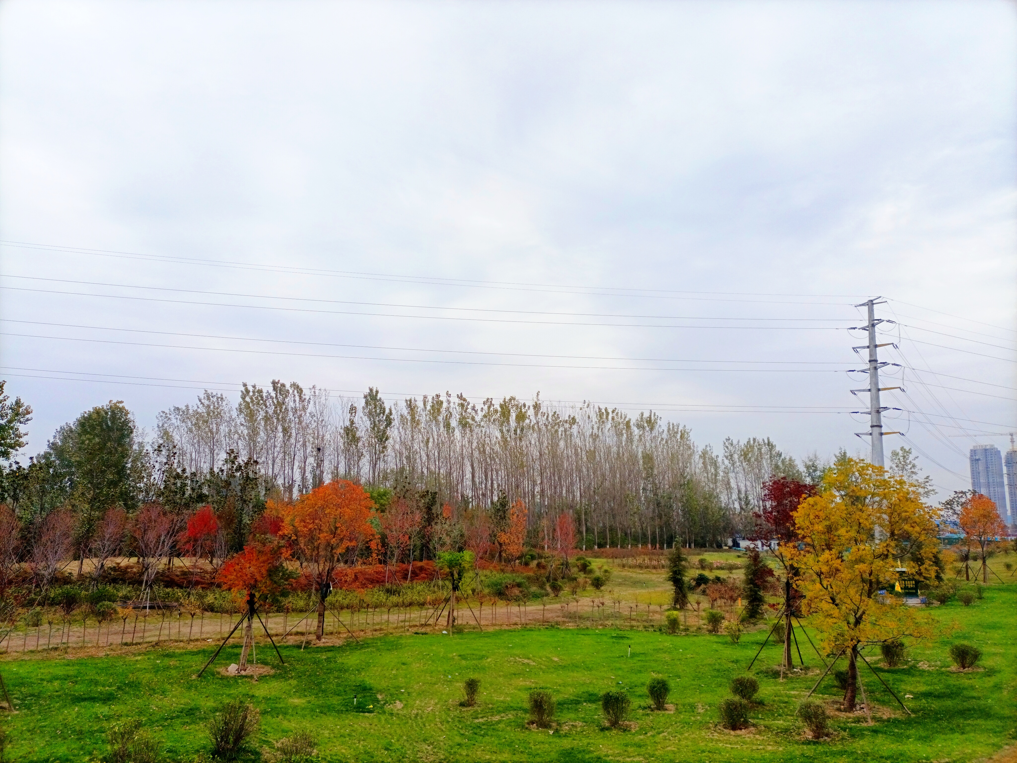 深秋時節天漸涼,滿目綠色稍染黃。沙潁河畔秋光美,游人垂釣劃舟忙。