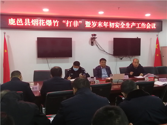 12月10日上午,在國家和省安全生產工作視頻會議結束后,鹿邑縣委常委、常務副縣長陸志杰,副縣長、縣公安局長任金瑞立即組織召開專題會議,對全縣煙花爆竹“打非”和歲末年初安全生產重點工作進行安排部署。