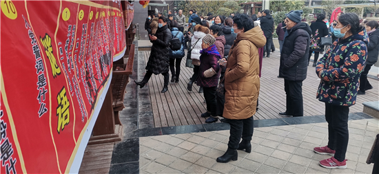 一大早,來自川匯區文聯、區民協的工作人員,將金色東方社區的休閑廣場裝扮得格外喜慶,兩條帶有傳統紋飾圖案的噴繪印著謎語和黨的知識,掛在休閑長廊上,吸引著出來曬太陽或散步的居民。區文聯黨組書記史濤,區文聯黨組成員、副主席游富華,區人和辦事處副書記武陽,市民協副主席羅營東、區民協主席杜超,區民協秘書長任建明等走進社區,參加這場活動。“中國共產黨是什么時候成立的?”“1921年7月23日”“答對了,獎洗衣液一壺!”游富華以問答的形式和居民們互動,向居民們普及黨的知識,居民們紛紛參與,氣氛活躍。