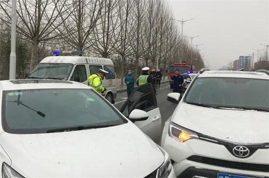 上午10時,指揮中心接到報警稱:在商水縣行政路西段,兩輛轎車發生剮蹭,造成轎車駕駛室車門變形,駕駛人被困車內,傷情嚴重。