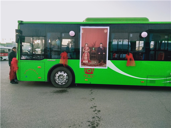 “這個(gè)想法是我和我媳婦一起商量出來的。我們覺得別人結(jié)婚都是用婚車,有點(diǎn)千篇一律。我們作為公交人就想另辟蹊徑,用我們公司的公交車當(dāng)婚車,同時(shí)也倡導(dǎo)綠色出行,還很有紀(jì)念意義?!?新郎買亞飛告訴記者。