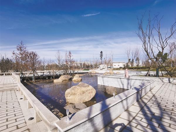 2020年12月31日,中心城區水系綜合治理書香文苑園區完工,向市民開放。書香文苑園區位于文昌大道與政通路交叉口西南角,是洼沖溝水系治理的一部分。園區內突出周口毛筆之鄉文化元素、建設生態綠色林帶、布置觀景濱水平臺等內容,建有兩處廣場、景觀旱噴、濱水平臺、文化地雕等設施,為市民增加一處活動休閑的地方。記者 孫安平 攝