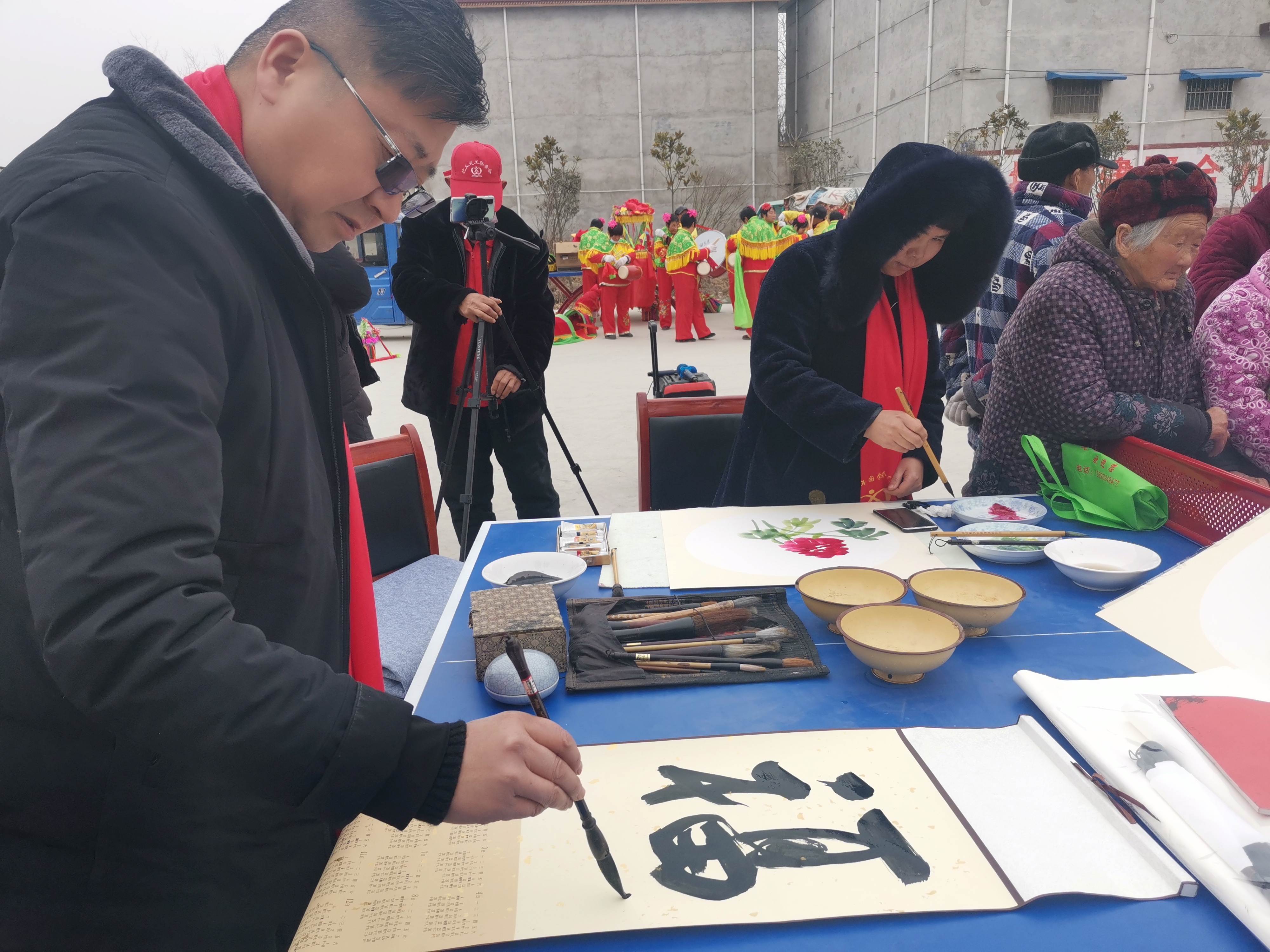 村民們提前得知由沈丘縣國家文化促進會組織的4名書法家從縣城趕來寫春聯送“福”字,紛紛早早來到村文化廣場,個個臉上洋溢著幸福的笑容,就連村上成立的舞蹈隊也自發前來演出助興。
