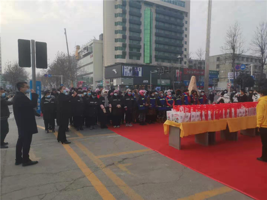 1月20日是傳統節日臘八節,一大早,中心城區萬順達廣場就為川盛環境有限公司的環衛工們準備了臘八粥和毛巾、口罩等防疫物資,阿里市場為每名環衛發放10元代金券,持劵可在市場內消費購物,愛心企業為辛勤的城市美容師在寒冷的冬季送上了一份暖心的祝福。