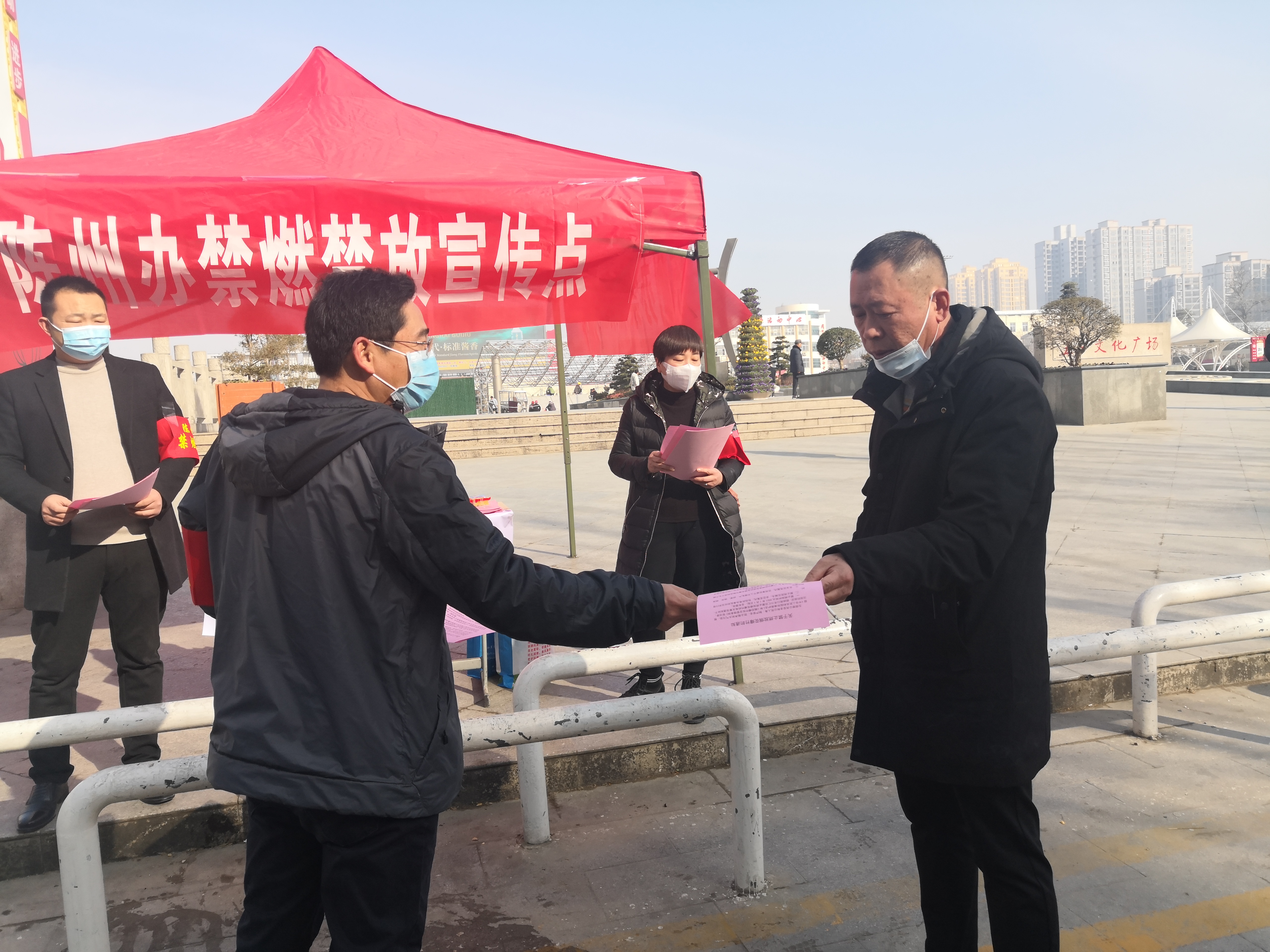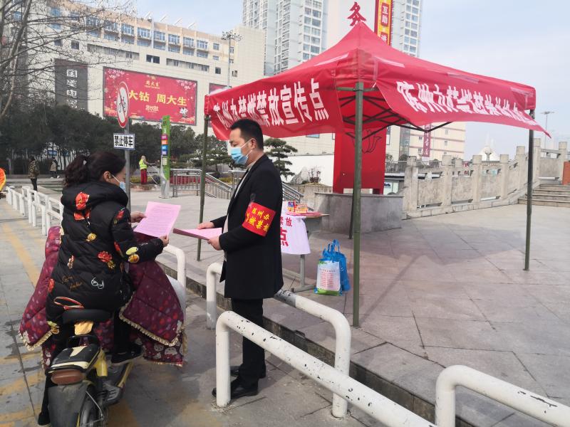 2月1日上午,川匯區陳州辦事處組織工作人員在五一文化廣場設置煙花爆竹禁燃禁放宣傳點,通過發放宣傳頁、小喇叭播放音頻等方式,向過往市民宣傳煙花爆竹禁燃禁放、環境保護相關知識,積極營造煙花爆竹禁燃禁放氛圍,確保市民度過一個干凈整潔、文明祥和、平安有序的春節。記者 張廉明 攝