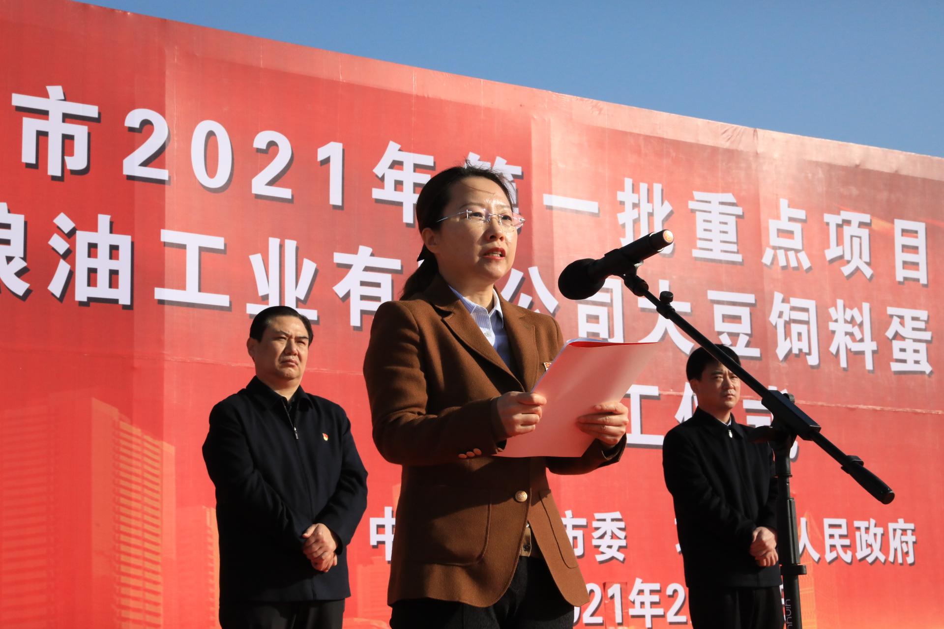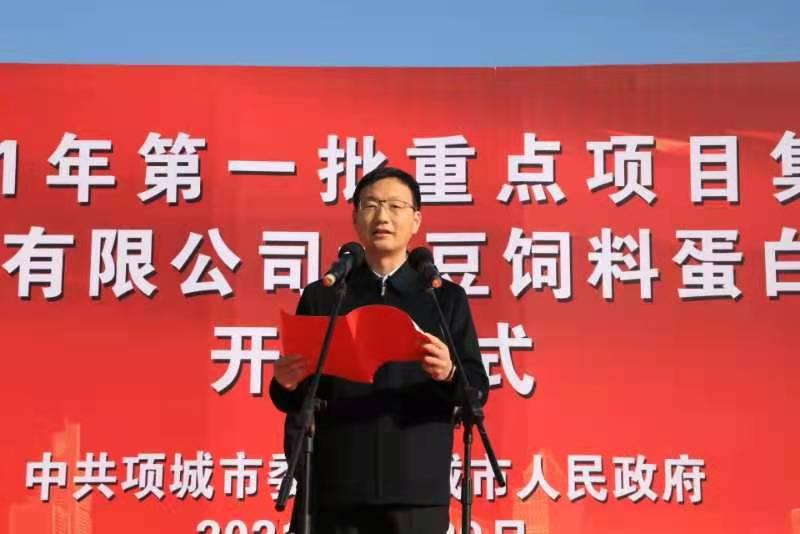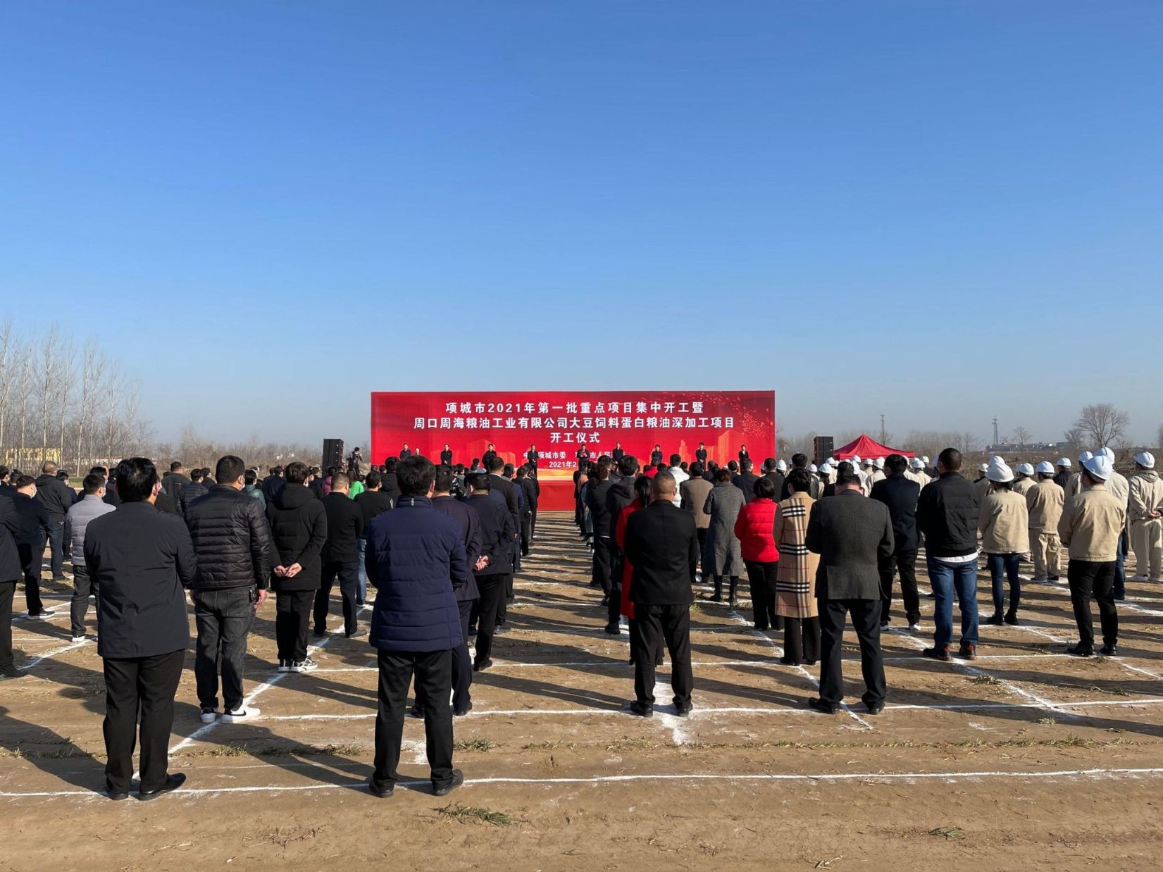 2月20上午,項城市2021年第一批重點項目集中開工暨周口周海糧油工業(yè)有限公司大豆飼料蛋白糧油深加工項目開工儀式在產(chǎn)業(yè)集聚區(qū)舉行,項城市委書記趙丹、市長王富生和市領(lǐng)導(dǎo)劉體峰、王玉玲、張森、毛磊、陳志、張愛玲、韓衛(wèi)東出席儀式。