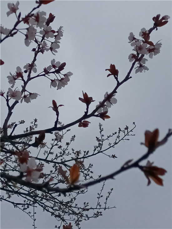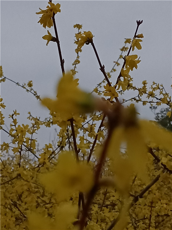 黃色的迎春花似云霞滿天,白色的玉蘭花婀娜多姿,紅色玉蘭含苞待放,即將飄零的臘梅老也留戀枝頭,舍不得離去,鮮艷的百花醉得垂柳在水面上扭起纖細的枝條。