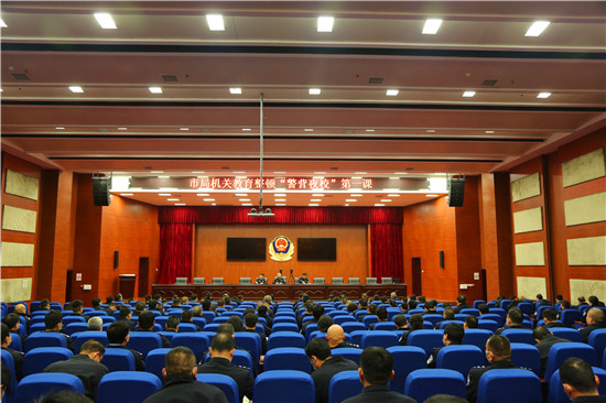 3月10日晚,“警營夜校”第一課正式開班開講。市公安局黨委委員、政治部主任郭冰與230名副科職以上民警一起參加學(xué)習(xí)。市公安局政治部黨支部副書記、三級高級警長韓鳳城主持第一課。