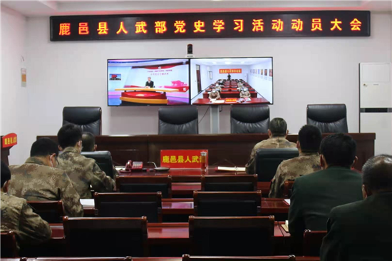 3月12日下午,鹿邑縣人武部黨委在一樓會議室組織召開黨史學習教育活動動員大會,全體現役干部、文職人員和職工黨員參加。