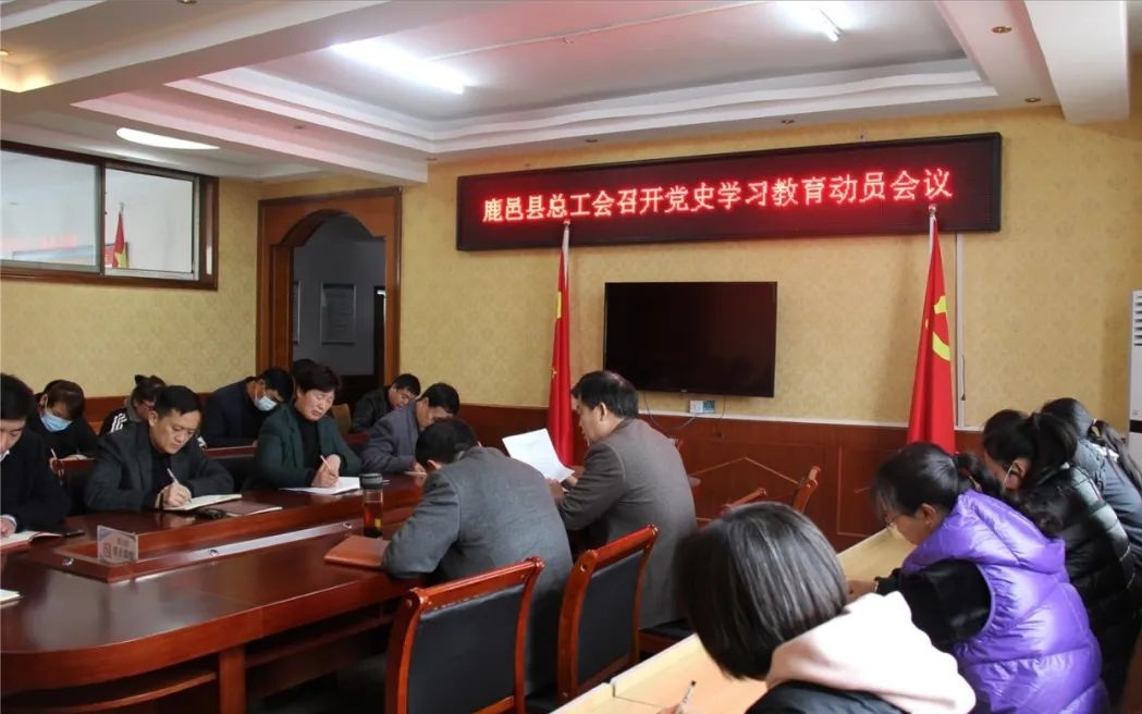 近日,鹿邑縣總工會召開黨史學習教育動員會議,傳達學習貫徹縣委黨史學習教育動員大會精神,對縣總工會開展黨史學習教育進行動員部署。