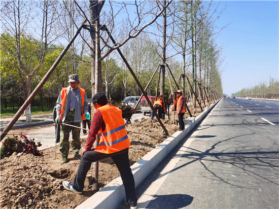 日前,氣溫回暖,春光明媚,正是種植樹木、養(yǎng)護(hù)苗木的好時節(jié)。連日來,在周口大道北段,園林工人利用現(xiàn)在好時節(jié),忙于栽植各種樹木,建設(shè)綠化工程。