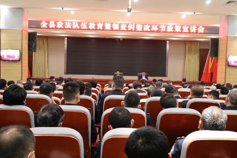4月14日,鹿邑縣在縣文化中心第一會議室召開全縣政法隊伍教育整頓查糾整改環節警示教育和政策宣講大會??h委委常委、政法委書記張國慶主持會議并講話。縣委常委、縣紀委書記、監委主任金溪,縣政府副縣長、縣公安局局長任金瑞,縣人民法院院長張述濤,縣人民檢察院檢察長魯建軍出席會議。