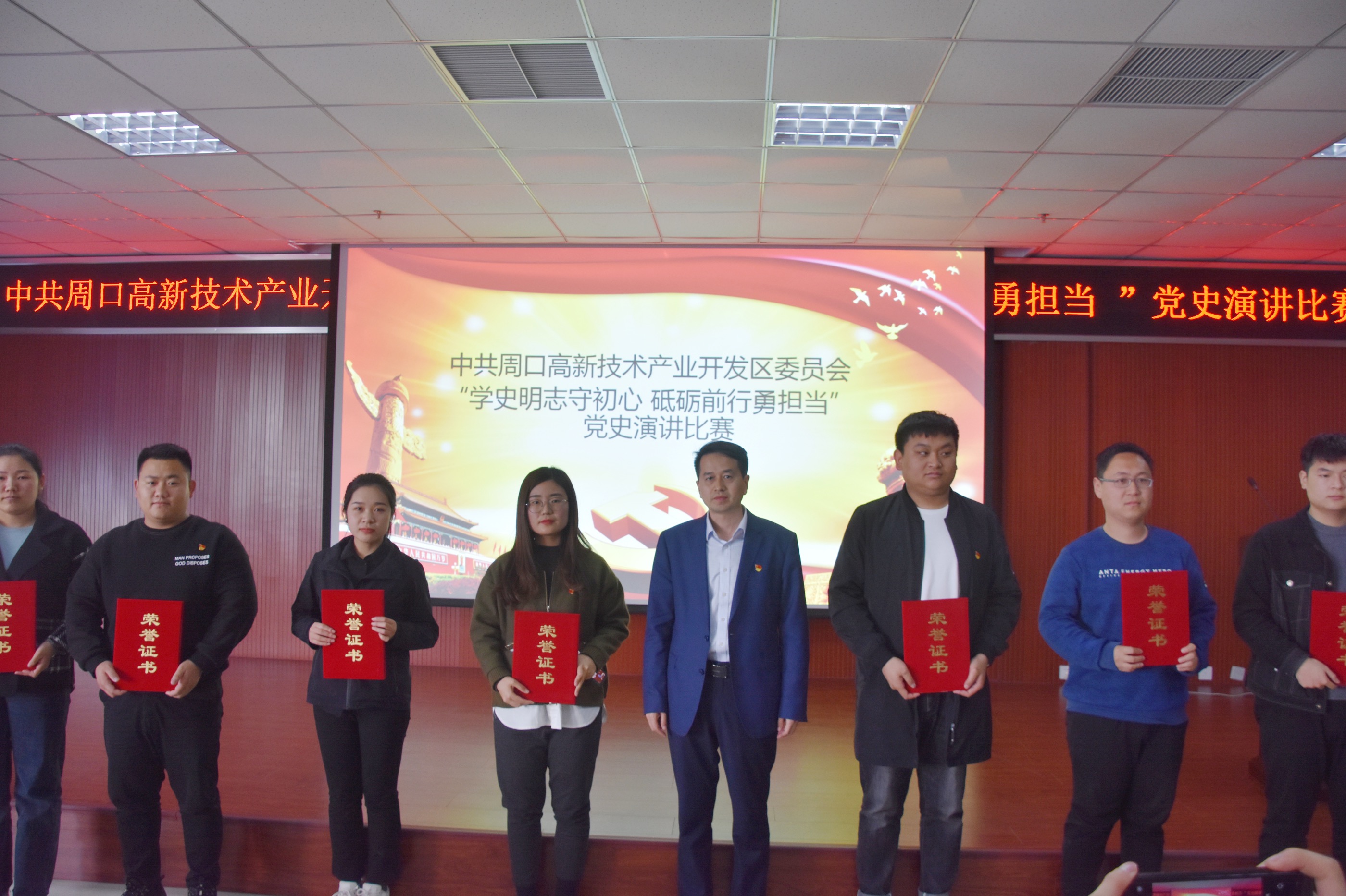 來自宏源支部、榮獲一等獎的楊智超頗有感觸地說:“英雄的偉大事跡,穿越時空閃耀著燦爛光芒,100年前革命英烈用錚錚鐵骨捍衛的偉大山河,在新時代,應由我們一代又一代青年用奮斗的一生接力守護。”“在全國上下開展黨史學習教育之際,周口高新區黨委舉辦演講比賽,能激勵廣大黨員干部重溫革命先輩奮斗歷程,賡續共產黨人精神血脈。”周口高新區管委會副主任陳學磊說。