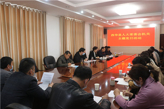 4月26日,西華縣人大常委會機關黨支部開展以“學黨史、頌黨恩、踐初心、當先鋒”為主題的黨日活動。縣人大常委會主任周曉燕,副主任張國玉、趙曉春、王心坎、龐有敬出席活動,機關全體黨員干部參加活動。
