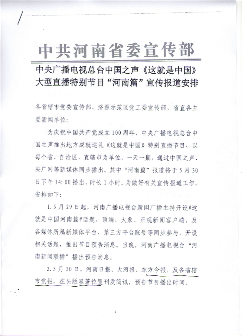 中央廣播電視總臺中國之聲《這就是中國》大型直播特別節目“河南篇”宣傳報道安排