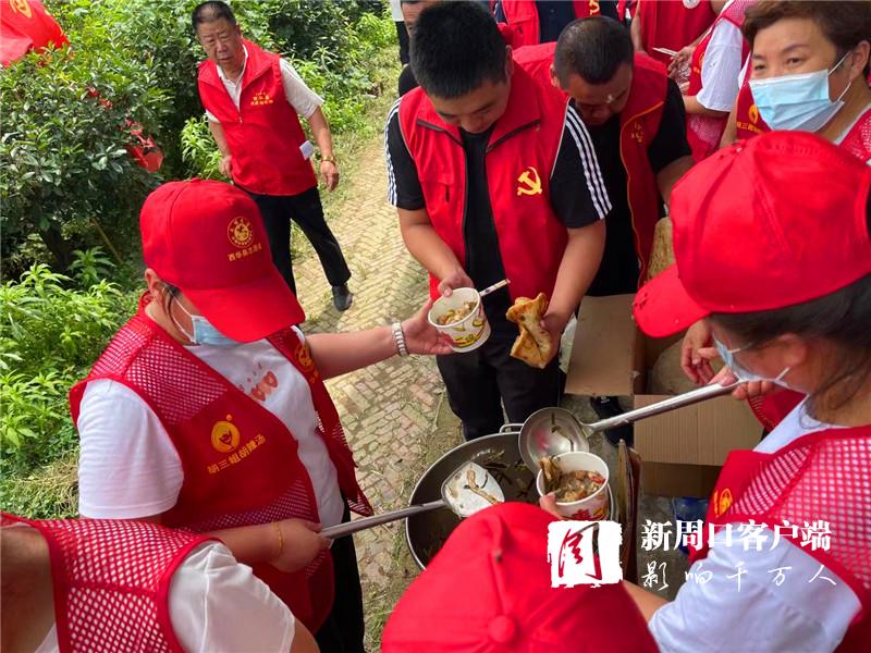 愛心涌動顯真情。三所樓村、后石羊村、黃橋村、裴莊村、肖橫村等自發(fā)成立了防汛救災(zāi)志愿者服務(wù)隊,特別是三所樓村支部書記李位霞帶領(lǐng)村志愿者每天炕油饃、燉雞子等,為縣應(yīng)急救援物資儲備點工作人員和志愿者送去愛心餐;后石羊村志愿者也自發(fā)為儲備點送去飯菜,并幫助裝卸救災(zāi)物資;黃橋村志愿者幫助儲備點和鄉(xiāng)黨委、政府裝卸物資,他們都是無怨無悔、真情奉獻(xiàn)。還有一些不愿透露姓名的黃橋籍和外地愛心人士也捐贈生活物資,他們有的是企業(yè)老板、退役軍人、有的在湖北、廣州、鄭州、周口等地工作,主動為防汛救災(zāi)伸出援助之手。②5