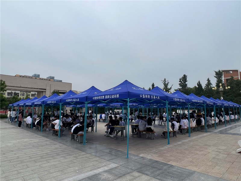 本次活動周口體彩分中心協調到40余頂帳篷,在考場外設置服務點為考生及家長提供飲用水、歇息區。結合周口市文昌中學實際情況,在考場校園內搭設一整片體彩遮陽帳篷陰涼區域,為考生候場提供一片“清涼”。 與此同時,體彩志愿者熱情地為考生及家長提供愛心服務,送上一瓶瓶清涼的礦泉水,帶著滿滿的愛心與祝福,給莘莘學子們加油助威,讓他們切身感受到體彩人的擔當和真摯的關愛。