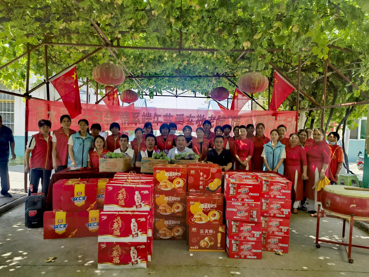 商水縣紅十字會來到活動現場,為老人們送去了餅干、面包、火腿腸、牛奶等120件慰問品和600個粽子,他們與老人們一起聽戲、談心,傾聽老人們的心聲,了解他們的需求,并向他們送去了節日祝福。