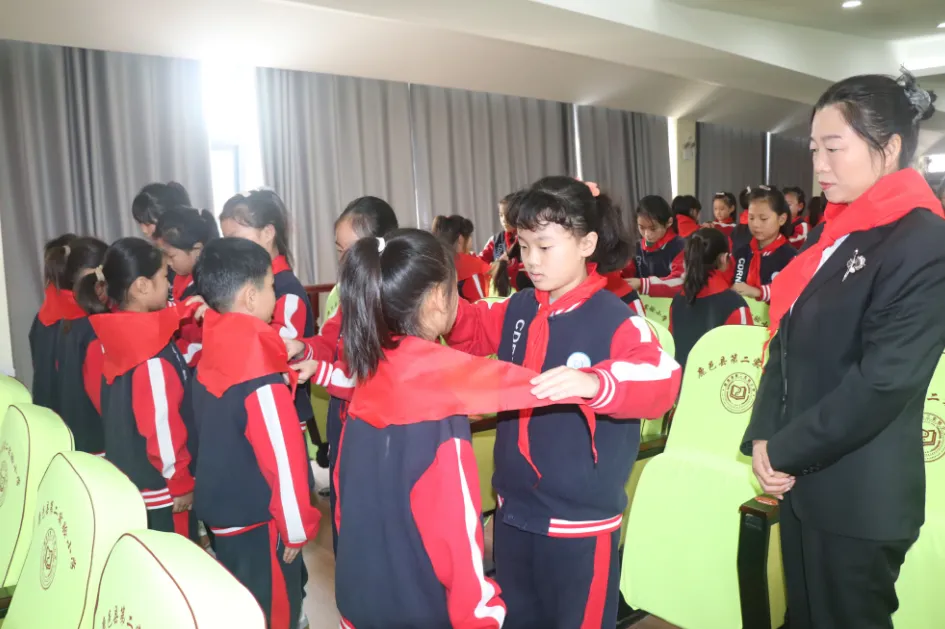 儀式上,該校副校長肖東旭宣布新隊(duì)員名單,230名同學(xué)加入中國少年先鋒隊(duì),成為一名光榮的少先隊(duì)員。緊接著,四年級(jí)優(yōu)秀隊(duì)員代表莊重地為新隊(duì)員代表系上鮮艷的紅領(lǐng)巾。在大隊(duì)長的帶領(lǐng)下,全體隊(duì)員在隊(duì)旗下莊嚴(yán)宣誓。少先大隊(duì)委員熱烈歡迎新隊(duì)員加入。