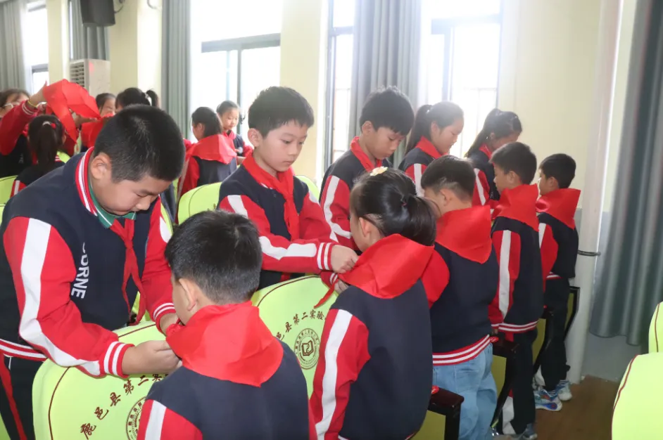 入隊(duì)前,該校中隊(duì)輔導(dǎo)員們利用隊(duì)課開展“六知、六會(huì)、一做”隊(duì)前教育,講解少先隊(duì)標(biāo)識(shí)標(biāo)志的含義、訓(xùn)練少先隊(duì)標(biāo)準(zhǔn)禮儀、唱隊(duì)歌。