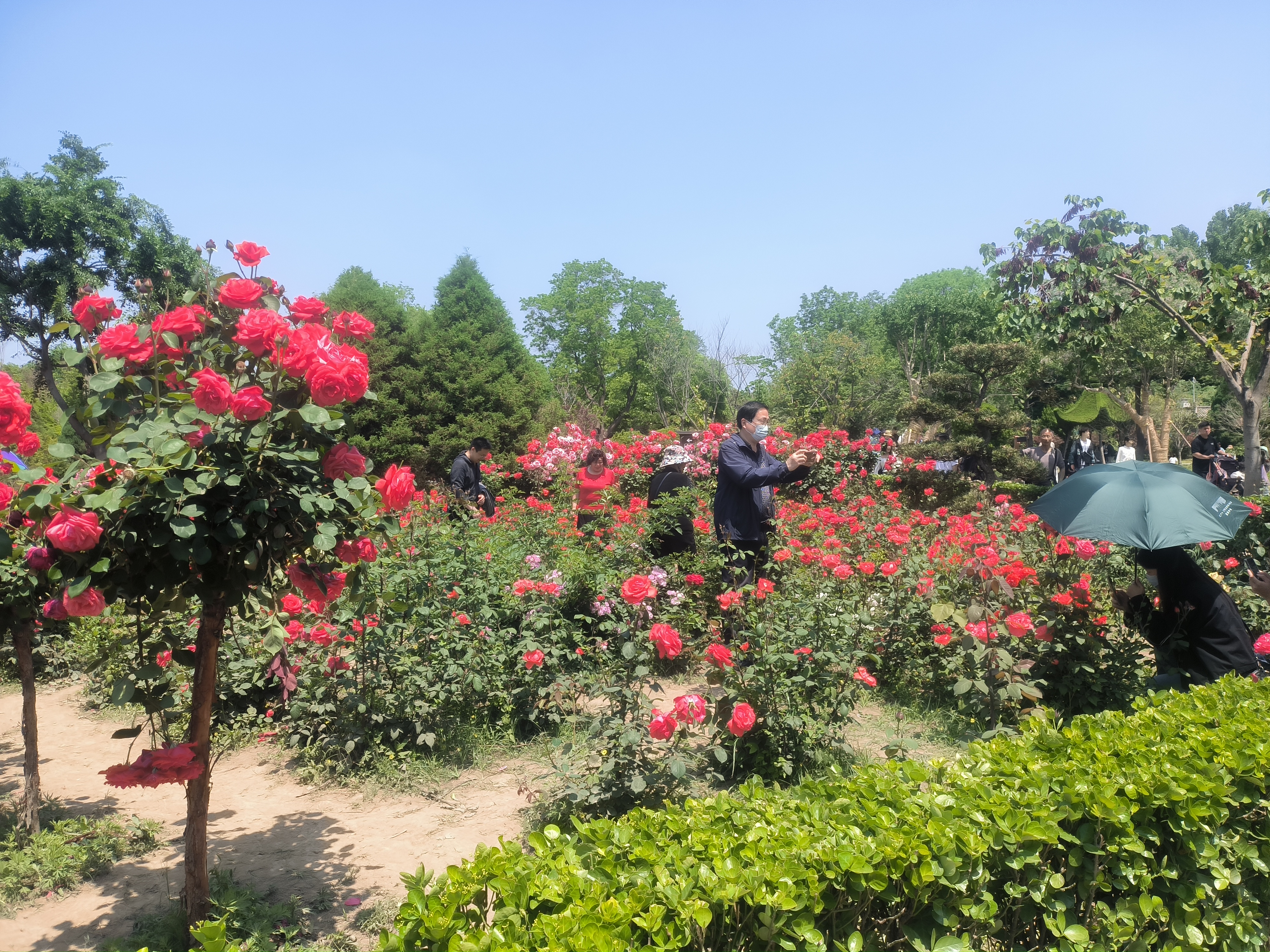 5月4日,淮陽區伏羲文化旅游區剪枝公園內,幾名游客跨過月季園圍欄強行與月季花“親密接觸”。一些市民對此頗有微詞,呼吁游客愛惜草木文明旅游。記者 沈湛 攝