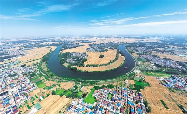5月27日,周口港中心港區在碧水、藍天、白云、金色麥浪、秀美村莊的映襯下,顯得十分壯美。近年來,我市利用水陸交通優勢,加快構建“鐵公機水”多式聯運體系,努力從“經濟通道”邁向“通道經濟”。
