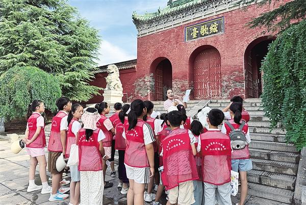 講解員為“小小講解員”集中培訓。8月11日,太昊伏羲陵文化旅游區“小小講解員”培訓活動圓滿落幕。此次活動中,淮陽區30余名青少年懷揣著對家鄉文化的熱愛,經過為期一周的集中培訓,具備基本的講解能力,為傳承淮陽千年文脈注入了新鮮血液。記者 侯俊豫 通訊員 莊秋薇 攝