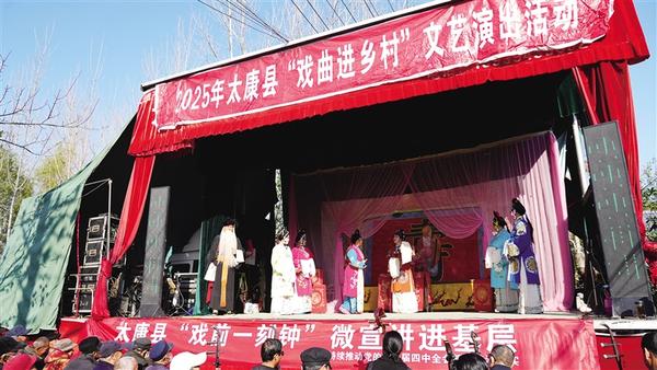 初冬時節,陽光和煦。近日,太康縣道情劇團開展送戲下鄉活動,在轉樓鎮周莊村為群眾上演了《珍珠塔》《王金豆借糧》等經典道情劇目,豐富了群眾的精神文化生活。圖為《珍珠塔》演出現場。記者 張洪濤 攝