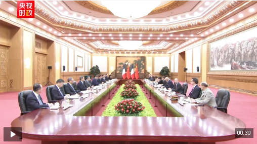 12月4日上午,國家主席習近平在北京人民大會堂同來華進行國事訪問的法國總統馬克龍舉行會談。