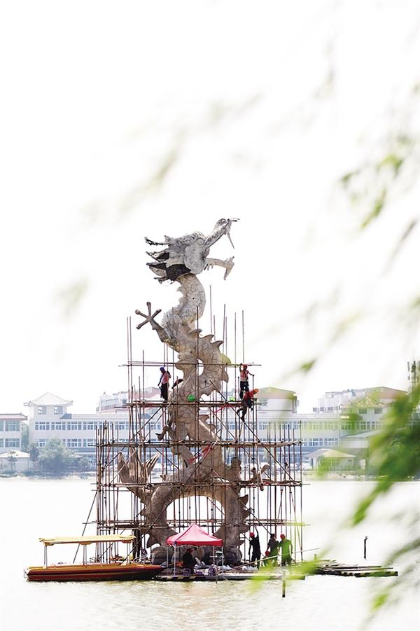 6月5日,建筑工人在搭建腳手架,開始對(duì)淮陽龍湖中的9座龍形雕塑進(jìn)行修繕。 ...[詳細(xì)]