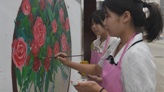 周口商水:小姐妹手繪壁畫 扮靚美麗鄉村