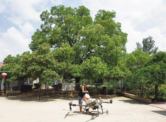專業技術人員為植保無人機添加農藥。鄲城縣寧平鎮擁有多株百年以上樹齡的古樹,這些“綠色活化石”承載著當地的歷史記憶。