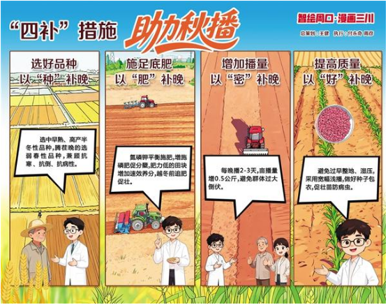 今年土壤養分流失大,晚播小麥根弱苗小。專家建議,底肥增磷肥促根壯苗,根據秸稈還田情況調整氮磷鉀肥用量,秸稈還田增尿素,未還田增鉀肥。