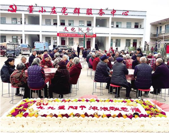 “得多燉一會(huì)兒,讓老人吃著方便。”10月29日是中華民族傳統(tǒng)節(jié)日重陽節(jié)。上午9時(shí),在趙德營鎮(zhèn)洼劉營行政村“兩堂三中心”門前空地上臨時(shí)搭起的灶臺(tái)前,該村黨支部書記趙紅霞腰系圍裙,一邊翻動(dòng)大鐵鍋里燉著的五花肉,一邊說道。