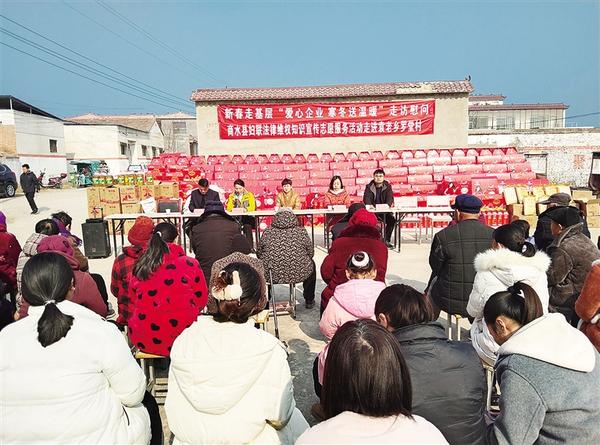 1月17日,商水縣委宣傳部副部長、縣新時代文明實踐中心主任王榮立攜手愛心企業代表洋河酒業商水總代理王海禛到黃寨鎮開展走訪慰問活動,為群眾送去慰問品及新春的美好祝福。
