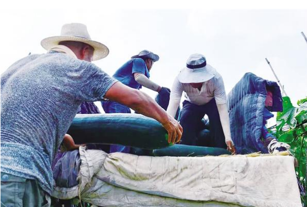 時入初秋,鄲城縣錢店鎮前堿廠黑皮冬瓜種植基地,一壟壟黑皮冬瓜長勢喜人,綠色瓜蔓相互纏繞,碩大的冬瓜在竹竿架上搖搖晃晃,呈現一派豐收的景象。