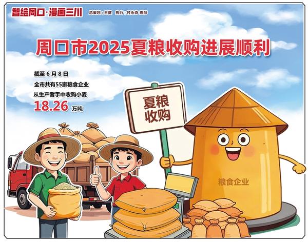 夏收期間,周口市多措并舉保障糧食收購工作。全市統籌30個政策性收儲庫點,為夏糧收購騰出14.8億斤倉容;利用市、縣、鄉、村四級儲備糧輪換機制,新增6億斤倉容。