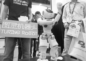4月28日,觀眾在2015全球移動互聯網大會上觀看一款語音識別智能機器人。當日,為期3天的2015全球移動互聯網大會在北京開幕,大會匯聚了來自全球移動互聯網公司的創新領袖,探討行業熱點,分享全球移動互聯網領域的重大機遇與變革。