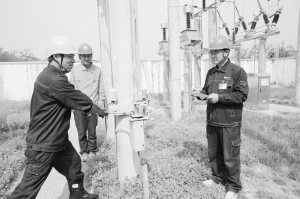 近日,針對頻繁的倒閘操作任務,扶溝縣供電公司嚴格執行“兩票三制”,加大對操作票的審核及現場安全監控力度,強化作業人員安全意識,規范操作人員行為,提高操作正確性。圖為扶溝縣公司運維二班對35千伏呂潭變電站1號主變進行倒閘操作。劉軍勝 攝