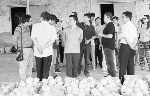在曹里鄉綠橄欖蔬菜種植園區,鄧錦宏詳細了解了園區種植瓜菜的品種結構和種植面積等。當了解到雖然該園區種植的瓜菜品質優良、價格實惠,但是由于缺乏信息資源,產品只能銷售到周邊城市,最遠才銷到武漢的實際情況后,鄧錦宏表示,一定要幫助農民把優質的瓜菜產品通過一畝田網上交易平臺賣到北京、上海等大城市,讓全國果蔬消費的高端市場進一步了解扶溝豐富的果蔬資源。在曹里鄉樊家蔬菜種植園區,鄧錦宏一行品嘗了九九瑞紅、綠寶、羊角脆等高端瓜果,并就共建市場、暢通信息渠道、后期附加服務等與瓜菜種植戶交換意見。