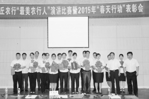 6月6日,沈丘農行召開“最美農行人”演講比賽暨2015年“春天行動”表彰大會。圖為獲獎人員合影留念。(陳高翔 攝)