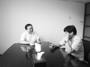 龐少磊與代理人在討論訴訟細節。