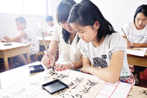 書(shū)畫(huà)相輔相成 為弘揚(yáng)“書(shū)畫(huà)同源”的中國(guó)傳統(tǒng)藝術(shù),本中心常年班采取書(shū)畫(huà)相輔相成的教學(xué)方法,毛筆與硬筆相結(jié)合、書(shū)法與繪畫(huà)教學(xué)交替進(jìn)行,以求事半功倍的教學(xué)效果。